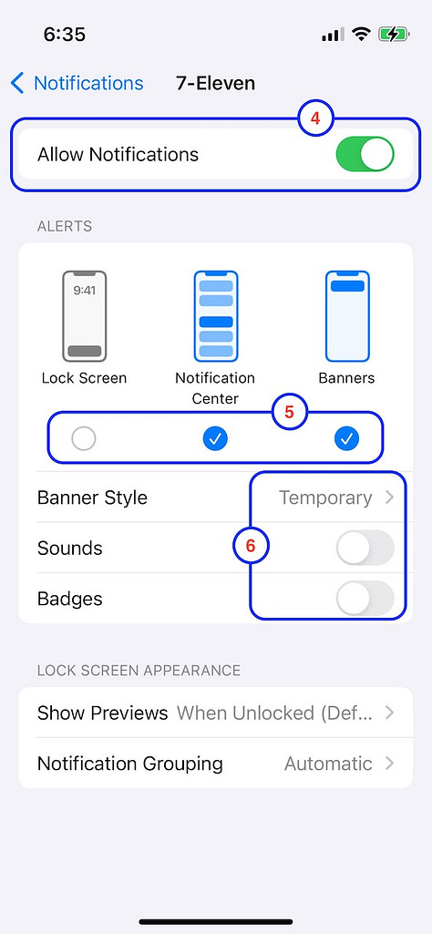 Ví dụ, không cần hiển thị ở Lock Screen (để xem ngay), chỉ hiển thị trong Notification Center (khi nào cần thì chủ động vuốt lên để xem), Banner chỉ xuất hiện tạm thời (không cần phải vuốt ẩn đi), không cần âm thanh (Sounds), không cần hiển thị “con số màu đỏ” (Badge) đầy khiêu khích.